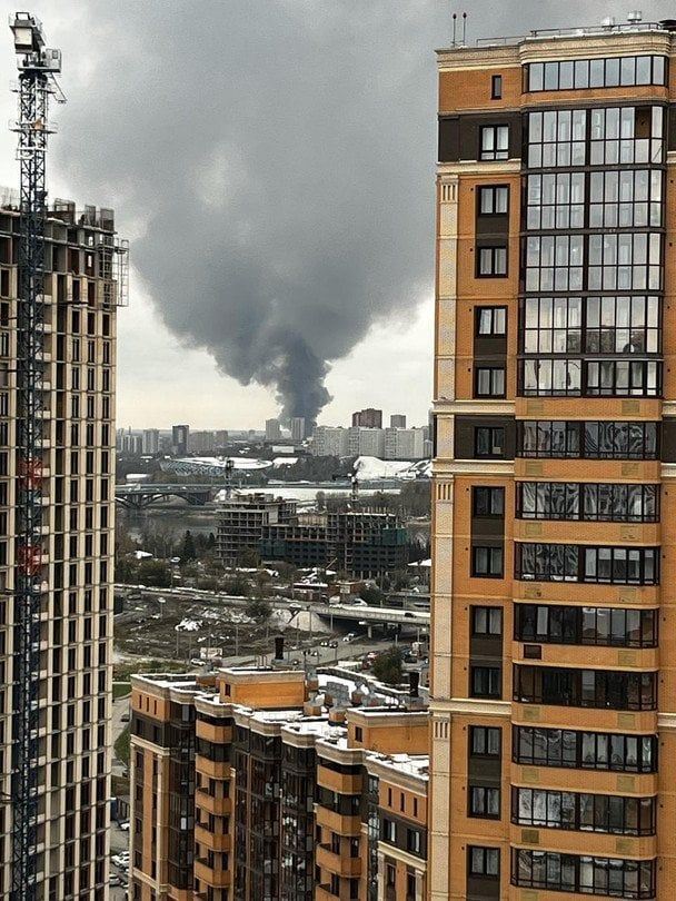 За повідомленнями місцевих джерел, загорівся склад, розташований поруч із виробничими приміщеннями підприємства. Над містом піднявся щільний стовп чорного диму, який видно з кількох районів.